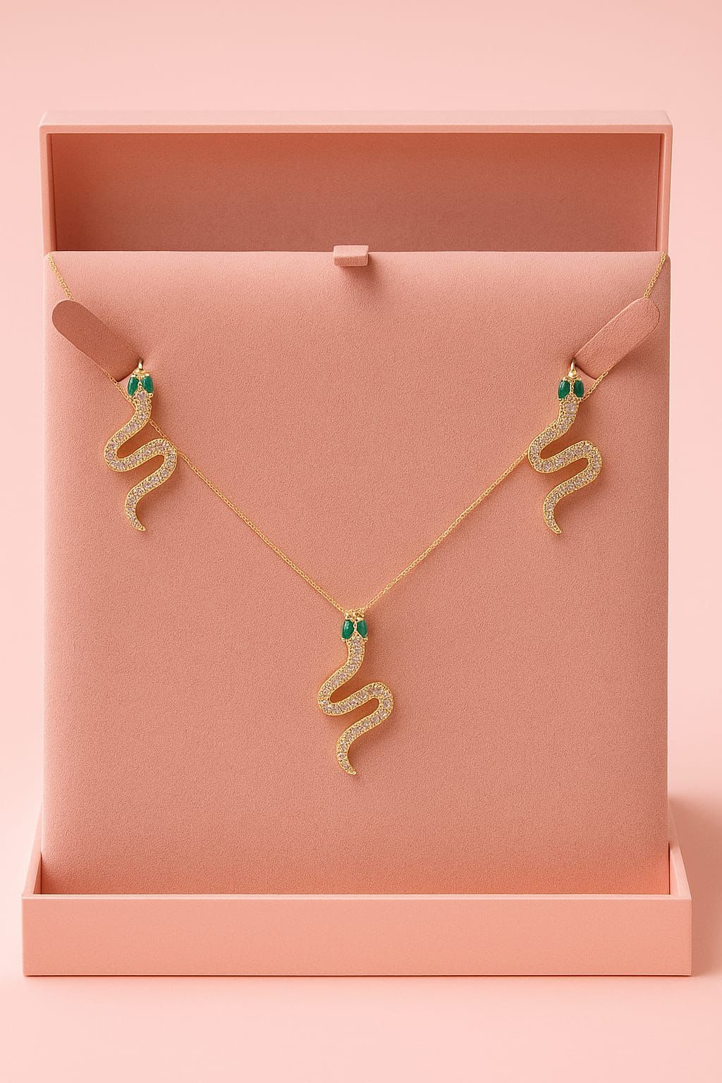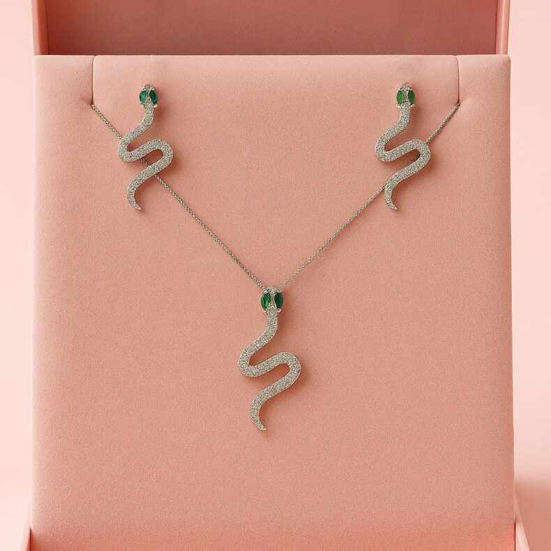 Conjunto folheado com cobra cravejada.